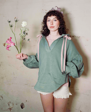 Billowing shapes, soft drapery, and blossoming hues harmonize to create a delicate balance of volume & fluidity. Refined by feminine details, the lighthearted cuts feature cascading bows, glistening silk, & cloud-like pu sleeves to add a touch of enchantment to the