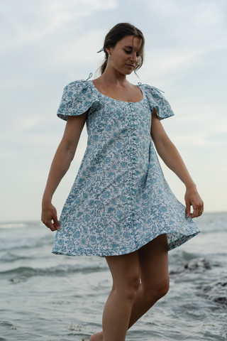 Garden-inspired hues unfold gently through the timeless craft of botanical dyeing, while the introduction of block printing adds layers of depth to the story of intentional, hand-formed artistry that rests at the label's core. Thoughtful craftsmanship, precise cuts, & considered design breathe life into each piece, rooted in tradition, shaped by place, ephemeral in feel yet lasting in form, honoring the beauty of the everyday.