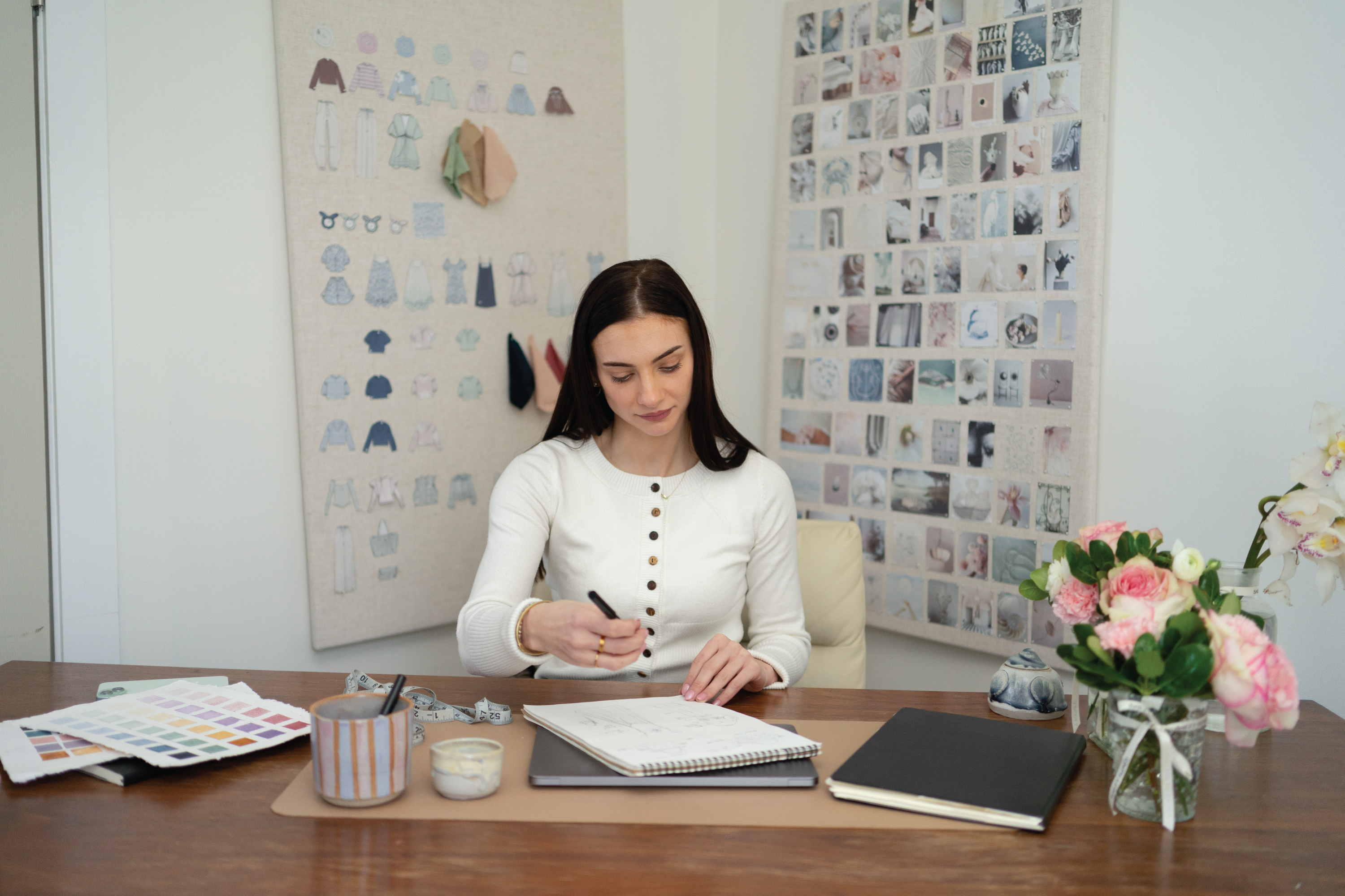 Back in the studio, the echoes of the journey remain. The scent of salt, the weight of sketches, the imprint of wind-swept fabrics. Inspiration gathered along the way now takes shape. Draping begins, stitches meet fabric, past silhouettes inform new constructions. The collection unfolds like the tide, pulled by memory, shaped by movement, carrying forward all that was learned along the way.